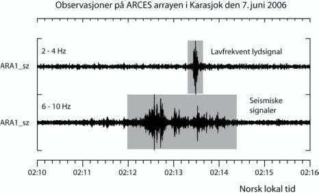 Farmer po wykonaniu zdjęcia zdążył już zapomnieć o tym zjawisku, gdy nagle po 7 minutach usłyszał potężny grzmot, który porównał do eksplozji bomby. Była to fala dźwiękowa wywołana prawdopodobnie wejściem tego ciała w atmosferę, która biegła do obserwatora z prędkością 330m/s Kilka minut później po przelocie bolidu stacja sejsmologiczna w Karasjoku odnotowała wstrząsy dokładnie o godz. 02:13.25.