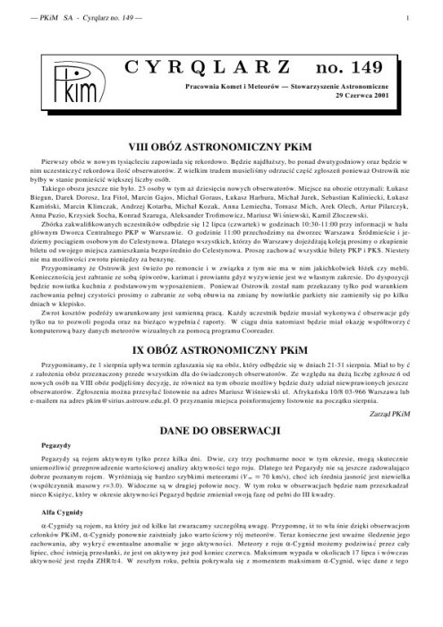 Strona GłównaPracownia Komet i Meteorów / Pracownia Komet i Meteorów - historia / Cyrqlarz / Cyrqlarz no. 149